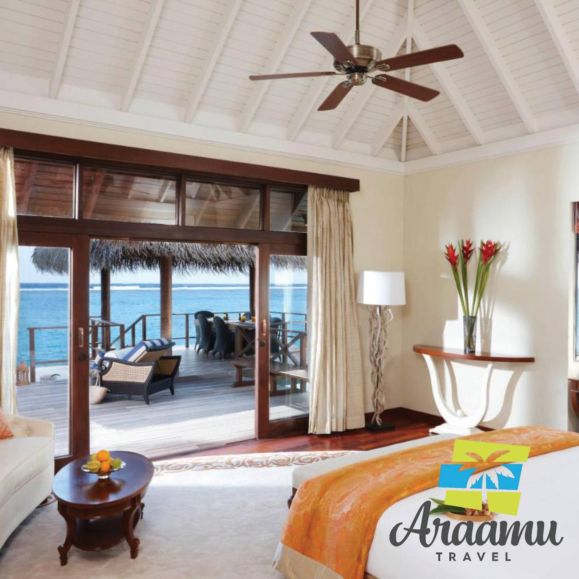 Beach Villa Suite medencével (2) kb. 365 nm (beleértve a kinti területet is): két szinten található, közvetlen partkapcsolatos. Két hálószoba kapott itt helyet fürdőszobával és erkéllyel, külön nappali terasszal, nyugágyak, ernyők és privát medence.
